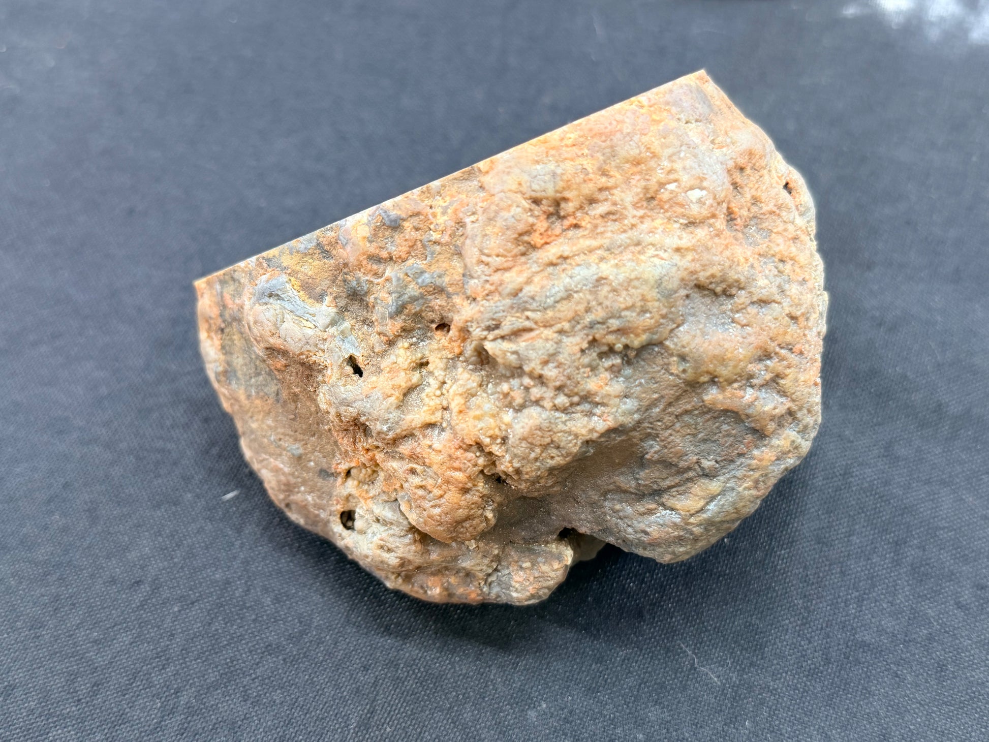 Gorgeous polished Kentucky agate specimen with calcite in the core. The agate is covered in little eyeballs or spherules. Pretty sweet piece of Estill county